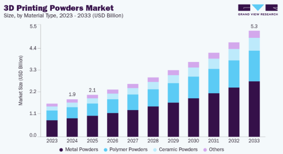 図 図26 3Dプリンティング粉末市場規模予測(医療分野、2021-2033年、10億米ドル)