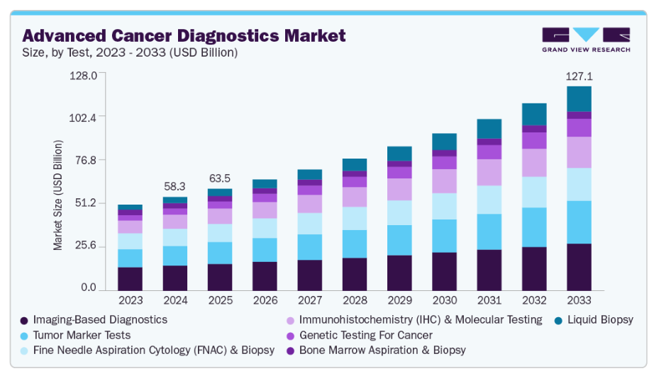 【英語タイトル】Advanced Cancer Diagnostics Market Size, Share & Trends Analysis Report By Test (Tumor Marker Tests, Fine Needle Aspiration Cytology (FNAC) & Biopsy, Imaging-Based Diagnostics, Bone Marrow Aspiration & Biopsy), By End-use, By Region, And Segment Forecasts, 2025 - 2033
