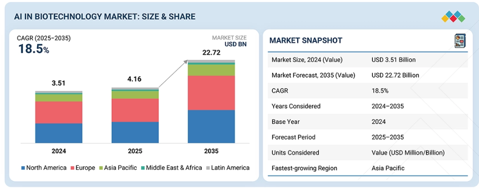 予測期間中、アジア太平洋地域が世界のバイオテクノロジー分野におけるAI市場で最も急速に成長する地域となる見込み