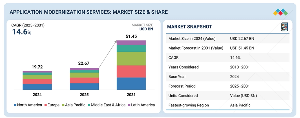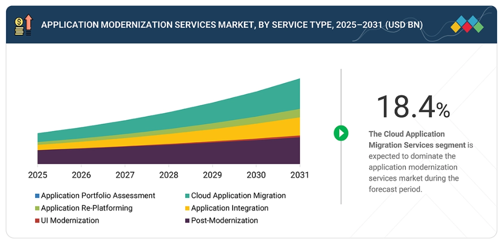 【英語タイトル】Application Modernization Services Market by Service Type (Cloud Application Migration, Application Re-Platforming, Post Modernization), Application Type (Legacy, Cloud-hosted, Cloud-native) - Global Forecast to 2031
