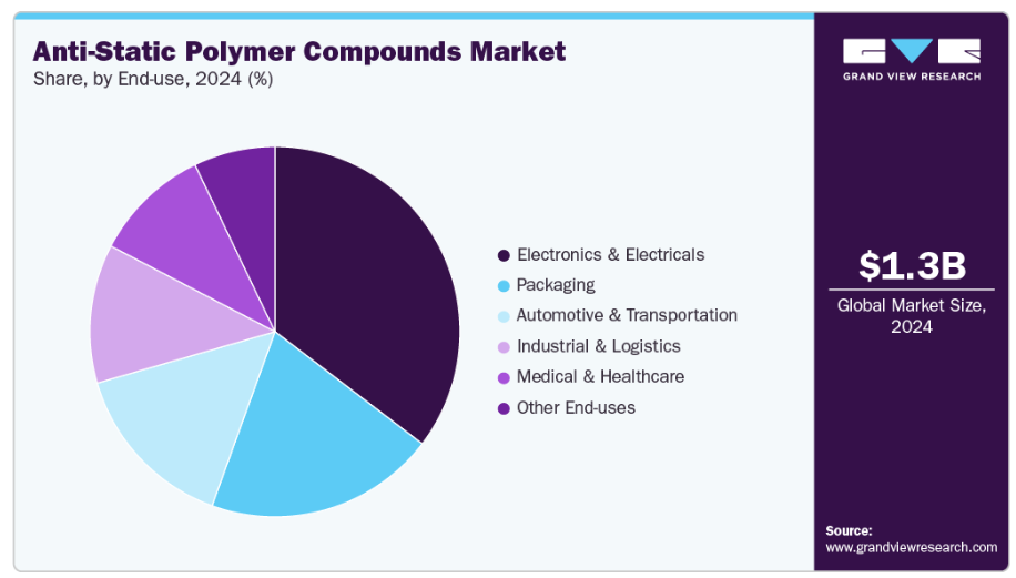 帯電防止ポリマーコンパウンドの主要な需要原動力は、依然として高感度電子機器の普及と、製造・サプライチェーン全体における静電気放電(ESD)管理の厳格化です。部品の小型化、組立工程の高度な自動化、半導体・電子機器製造の世界的拡大に伴い、アフターマーケット対策ではなく、信頼性の高い内蔵型静電気制御が求められています。同時に、自動車の電動化や医療機器製造といった隣接分野においても、部品レベルでの導電性・帯電防止材料の採用が求められており、コンパウンダーには用途特化型の配合供給が迫られています。