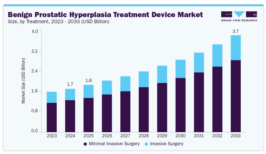 高齢化社会の進展は、前立腺肥大症(BPH)治療機器市場の主要な成長要因となっております。これは、BPHの発症率が加齢とともに増加するためです。
