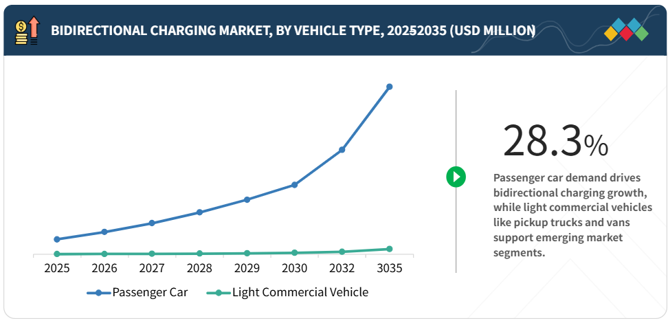 乗用車が市場の大部分を占めると予測されており、これは自動車メーカーによる双方向充電ハードウェアの急速な採用と、家庭用エネルギー管理機能に対する消費者需要の高まりが背景にあります。商用車fleet(フリート)での導入も増加傾向にあり、個人向け電気ピックアップトラックや商用バンも同様に普及が進んでいます。