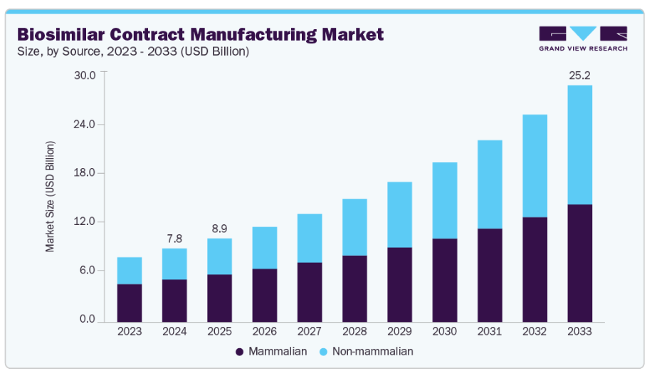 これに加え、米国、欧州、新興経済国などの主要市場における支援的な規制環境がバイオシミラーの採用を促進しています。米国FDAや欧州医薬品庁(EMA)などの規制当局は、安全性と有効性を確保しつつ市場参入を迅速化する合理化された承認プロセスを確立しました。こうした枠組みはバイオシミラー開発への投資を促し、高品質な製造パートナーへの需要を高めています。受託製造企業(CMO)は、厳格な規制基準への順守に関する専門知識を有しており、企業にコンプライアンス保証とグローバル市場へのアクセスを提供することで利益を得ています。世界的に規制の明確化が進む中、バイオシミラー生産におけるCMOへの依存度はさらに高まり、市場の成長をさらに加速させると予想されます。