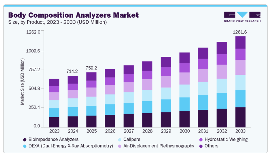 【英語タイトル】Body Composition Analyzers Market Size, Share & Trends Analysis Report By Product (Bioimpedance Analyzers, Hydrostatic Weighing, Calipers), By End-use (Hospitals & Clinics, Fitness Centers & Gymnasiums, Homecare Center) By Region, And Segment Forecasts, 2025 - 2033