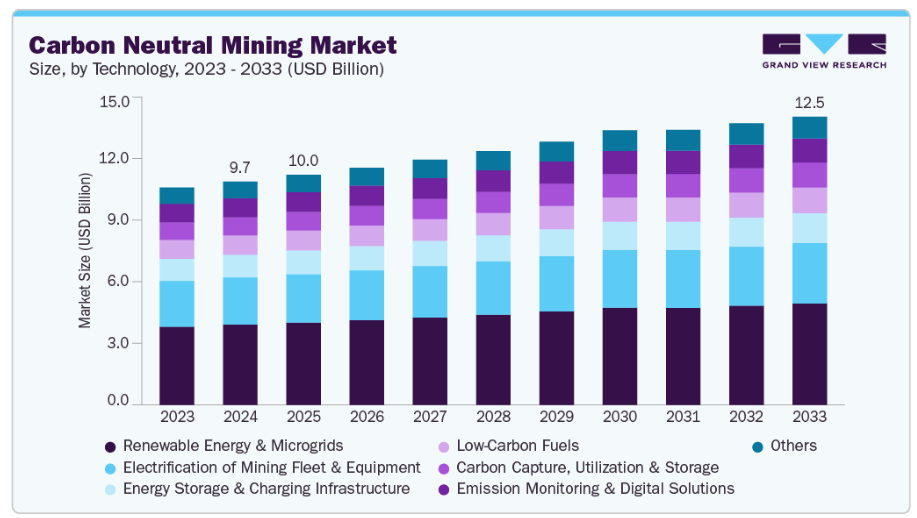 本レポートでは、2021年から2033年までの世界・国別・地域別の収益成長を予測し、各サブセグメントの最新動向を分析します。グランドビューリサーチは、技術、鉱業の種類、地域に基づいてグローバルカーボンニュートラル鉱業市場レポートをセグメント化しました。