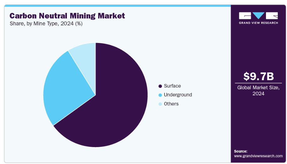 - 2024年、露天掘り鉱業セグメントがカーボンニュートラル鉱業市場の65.0%以上を占め、最大のシェアを維持しました。