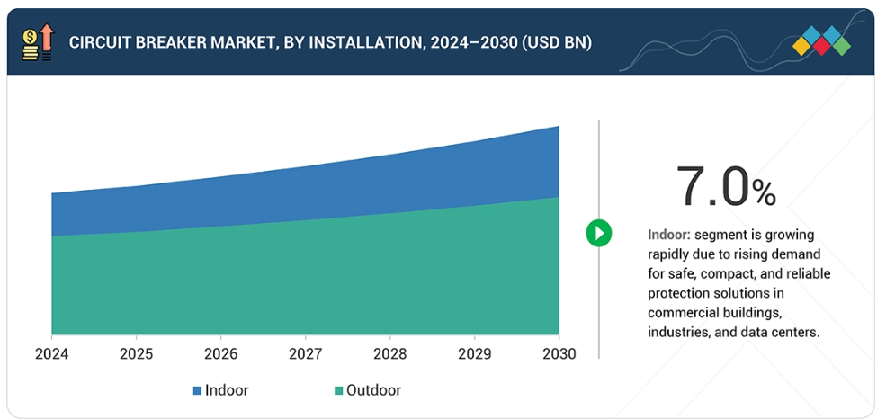 - 産業・商業・家庭用分野における安定した高品質電力への需要増加が、遮断器市場の成長を牽引しています。産業オートメーションの進展、再生可能エネルギーの統合、データセンターの拡大が主要な成長要因です。政府や産業界が電力の信頼性と効率性向上に注力していることも、先進遮断器の導入をさらに促進しています。