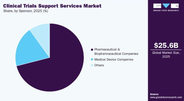 - スポンサー別では、製薬・バイオ医薬品企業セグメントが2025年に最大の市場収益シェアを占めた。
