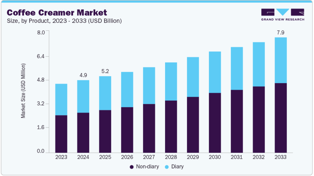 さらに、ケトジェニックや低炭水化物ダイエットの流行が、特にエネルギー補給を求める健康志向・フィットネス志向の消費者層において、コーヒーへの機能性添加物としての高脂肪クリーマー需要を後押しした。