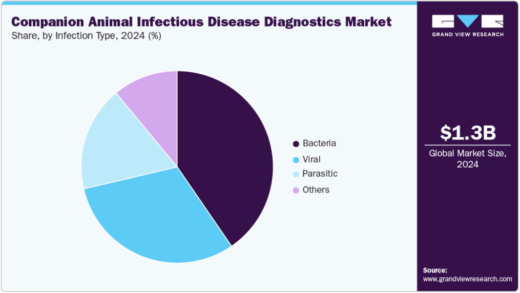 その他セグメントは予測期間中、最も高いCAGRで成長すると見込まれる。研究機関は科学的知見の深化、革新的な検査手法の開発、新規診断ツールの検証を通じて、伴侶動物感染症診断業界を牽引する重要な役割を担っている。これらの機関は疾患の病態解明、バイオマーカー発見、新興病原体に関する重要な研究を実施し、より正確で効率的な診断ソリューションの創出に直接貢献している。研究機関と獣医診断企業との連携は、技術移転を促進し、最先端の分子・血清学的技術の商業化を加速させる。