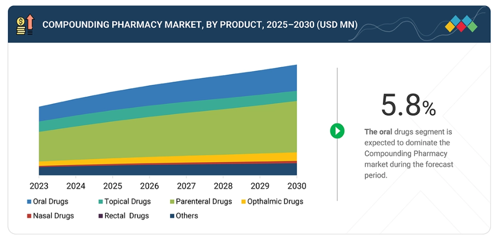 【英語タイトル】Compounding Pharmacy Market by Product (Oral, Topical, Parenteral), Compounding Type (Ingredient Alteration, Dosage Alteration), Therapeutic Application (Pain Management, HRT), Sterility (Sterile), End User (Pediatric, Adult) - Global forecast to 2030