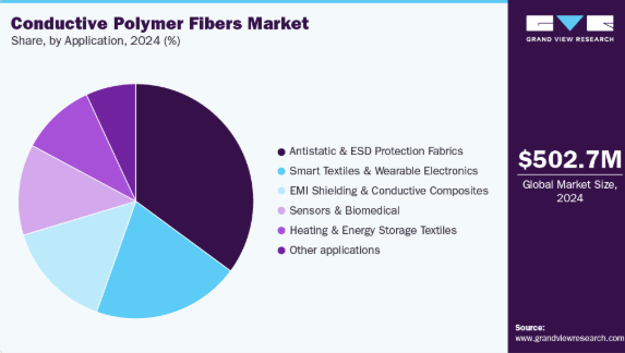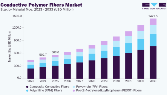 【英語タイトル】Conductive Polymer Fibers Market Size, Share & Trends Analysis Report By Material Type (PANI Fibers, PPy Fibers, PEDOT Fibers), By Application (Smart Textiles & Wearable Electronics, Antistatic & ESD Protection Fabrics, EMI Shielding & Conductive Composites), By Region, And Segment Forecasts, 2025 - 2033