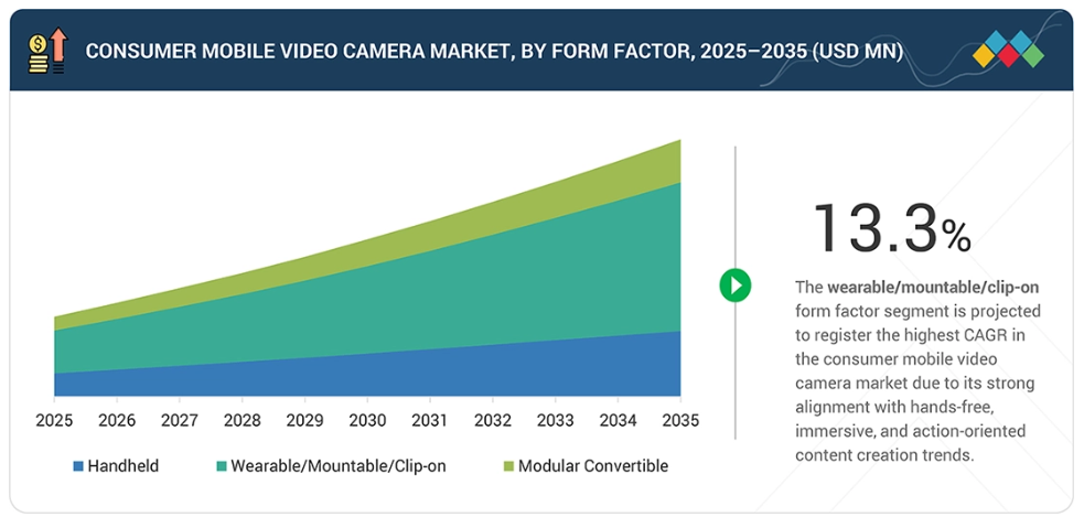 市場成長は、クリエイター経済の急速な拡大、ショート動画やライブ動画コンテンツの消費増加、スマートフォンを超えた高品質で携帯性の高い動画撮影ソリューションへの需要増大によって牽引されています。