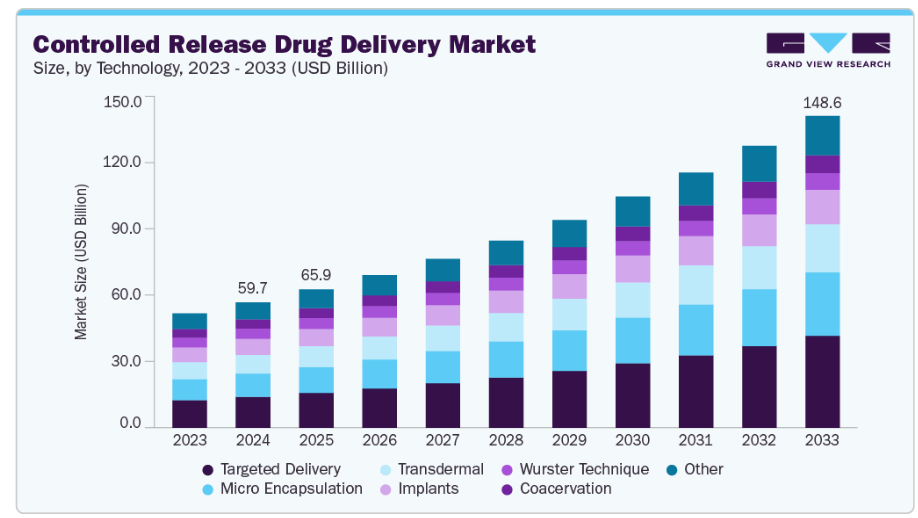 【英語タイトル】Controlled Release Drug Delivery Market Size, Share & Trends Analysis Report By Technology (Targeted Delivery, Transdermal), By Release Mechanism, By Application (Metered Dose Inhalers, Injectable), By Region, And Segment Forecasts, 2025 - 2033
