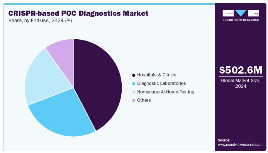 在宅検査セグメントは、予測期間中に最も急速な成長が見込まれます。これは、便利で迅速、かつ非侵襲的な自己検査オプションに対する消費者需要の高まりによるものです。疾患の早期発見に対する認識の向上、遠隔医療サービスの拡大、分散型診断の普及に伴い、CRISPRベースの在宅検査形式が人気を集めています。さらに、携帯型アッセイキット、スマートフォン対応の測定結果表示、ユーザーフレンドリーなCRISPRプラットフォームの進歩により、臨床環境外でも分子レベルの精度が実現可能となりました。パンデミック後の感染症自己検査の普及、および診断企業による低コストで使いやすいCRISPR検査キットの商業化に向けた取り組みが、本セグメントの成長見通しを後押しすると予想されます。