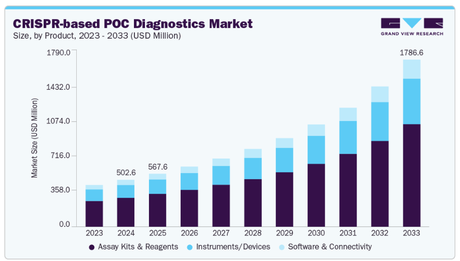 【英語タイトル】CRISPR-based POC Diagnostics Market Size, Share & Trends Analysis Report By Product (Instruments/Devices, Assay Kits And Reagents, Software And Connectivity Platforms), By Technology, By Application, By End-use, By Region, And Segment Forecasts, 2025 - 2033