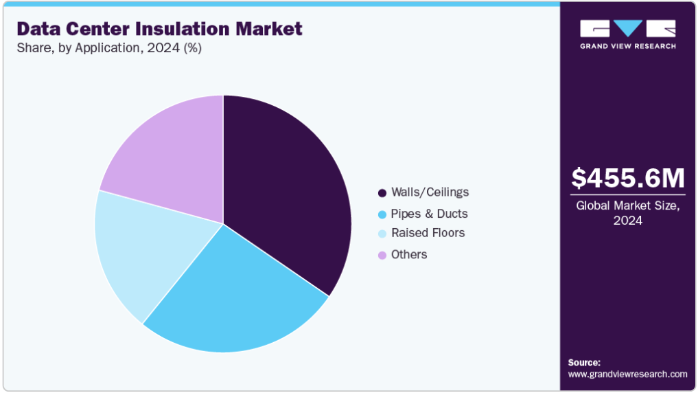 2024年時点で壁・天井セグメントが最大の市場シェアを占めました。壁と天井はデータセンターの主要構造面であり、断熱の重要領域です。外部環境との熱交換を最小化することで、これらの表面への断熱はHVAC効率を向上させ、エネルギー消費を削減し、サーバー性能最適化に不可欠な温度安定性を支えます。さらに、これらの表面は高速サーバーや冷却システムからの騒音を伝達することが多い。壁や天井に防音材を施工することで音を吸収・減衰させ、騒音公害を大幅に低減できる。これは特に、静かな環境の維持が運用上の快適性や規制順守に不可欠なエッジデータセンターや、オフィス空間・都市部に近接した施設において重要である。