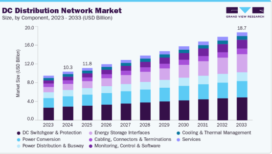 データセンター、EV充電インフラ、産業用オートメーションシステムの普及拡大に加え、パワーエレクトロニクス、ソリッドステート遮断器、DC最適化グリッドコンポーネントの進歩により、導入が加速しています。直流(DC)配電ネットワークソリューションは、変換損失の低減、システムアーキテクチャの簡素化、および送電網の近代化に対する規制面での支援により、ますます費用対効果の高いものとなっています。これにより、DC配電ネットワークは、長期的なエネルギー効率、送電網の安定性、そして世界的な電化目標を実現するための重要な基盤として位置づけられています。