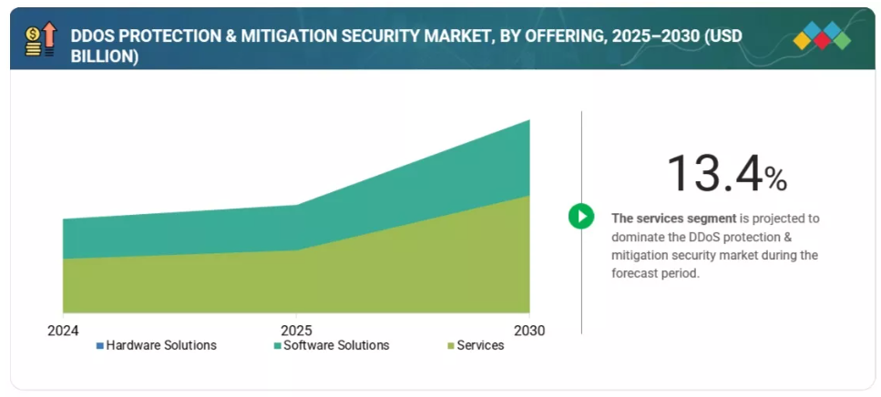 この成長は、DDoS攻撃の頻度と高度化が進んでいること、企業のデジタルトランスフォーメーションが急速に進んでいること、クラウドベースのサービスへの依存度が高まっていることが主な要因です。