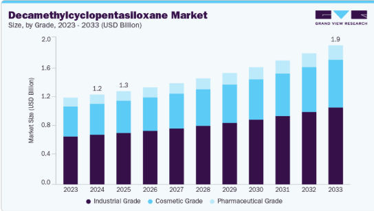 その優れた揮発性、展延性、および幅広い原料との相溶性により、高級製品処方において不可欠な存在となっている。産業用および家庭用アプリケーションにおけるシリコーン系潤滑剤および洗浄剤の需要増加が、市場拡大をさらに後押ししています。医薬品製剤におけるD5の採用拡大、高純度シリコーン合成技術の進歩、アジア太平洋地域の産業生産量の増加も市場成長を促進しています。