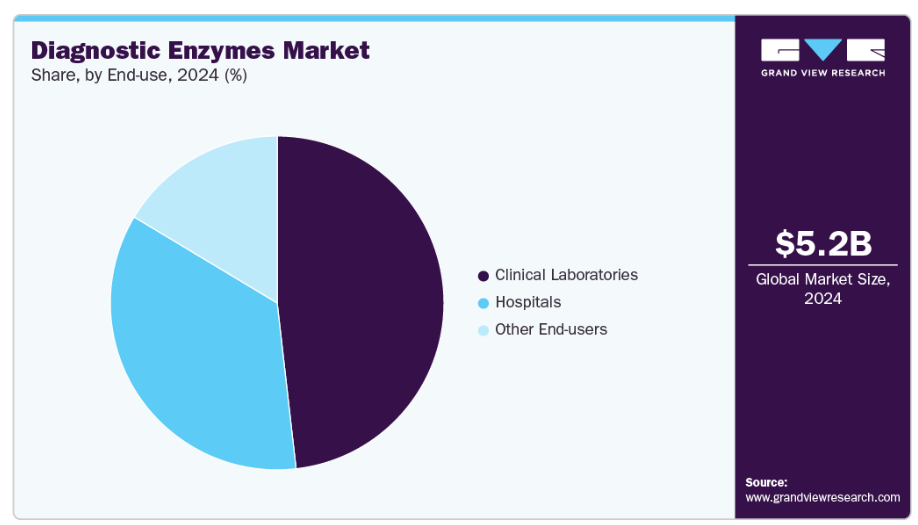 - 製品別では、臨床酵素分野が2024年に65.33%と最大の収益シェアを占めました。