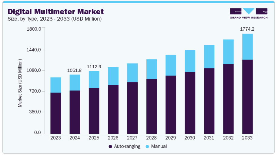 先進的な製造技術や電子分野での採用拡大により、需要が増加しております。再生可能エネルギーや電気自動車への移行により、高電圧や複雑な診断に対応可能なマルチメータの需要がさらに高まっています