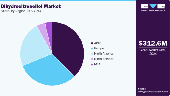 パーソナルケア・化粧品セグメントは、スキンケア、ヘアケア、デオドラント製品における安定性と快い香りを備えた香料分子への一貫した高需要により、2024年に36.6%の収益シェアで市場を支配した。ジヒドロシトロネロールの多様な処方への適合性と信頼性の高い性能は、主要FMCG企業における優先的な地位を強化している。確立された供給ネットワークと厳格な品質基準が、このセグメントの主導的立場をさらに固めている。