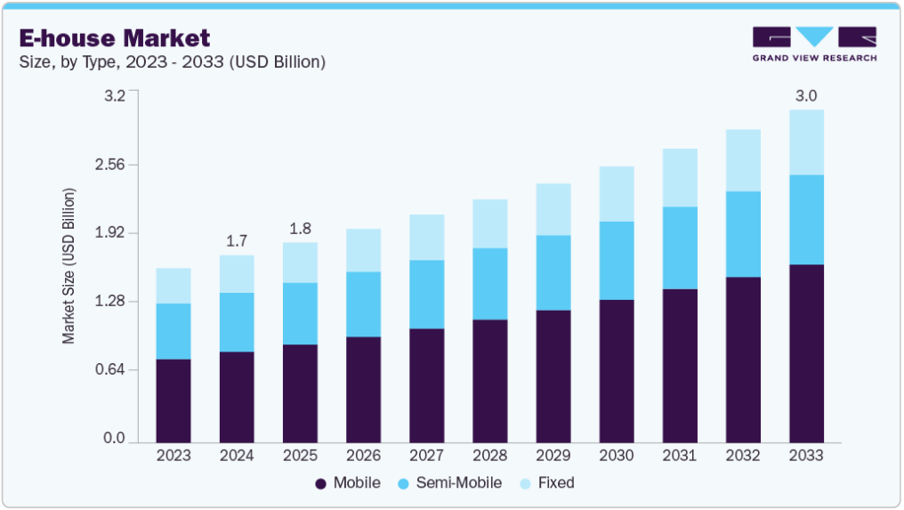 分散型で耐障害性の高いエネルギーインフラの需要が、特に発展途上市場や環境破壊の影響を受けやすい地域で高まるにつれ、モバイルEハウスの需要は急増すると予想され、世界市場におけるその優位性がさらに強化される見込みです。