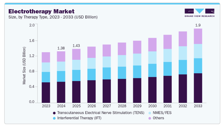TENSやEMS装置など、携帯性に優れ使いやすい機器の技術的進歩により、アクセシビリティが向上し、患者のコンプライアンスが改善されました。薬物を使用せず、外科手術を伴わない疼痛管理ソリューションへの需要の高まりが、市場普及を促進しております。
