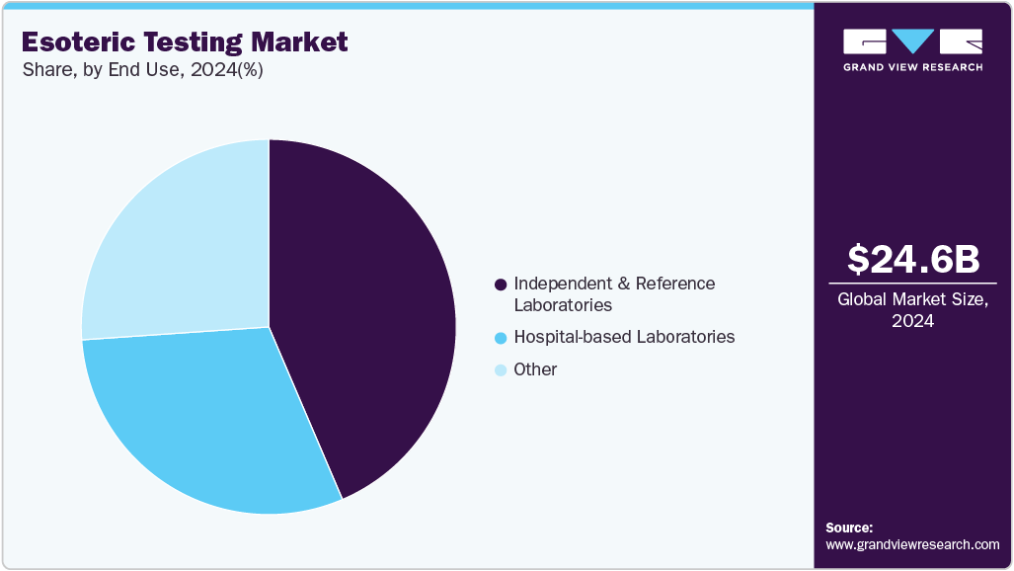 2024年には独立検査機関および参照検査機関セグメントが最大の収益シェアを占め、市場を支配しました。この優位性は、独立検査機関の増加、特殊検査の処理量の多さ、検査室の自動化進展に起因します。特殊検査の実施と結果分析には、高度な技能を持つ人材、先進的な機器、資材が通常必要です。医師、診療所、病院は通常、費用対効果の高い代替手段として、これらの検査を独立した専門臨床参照検査機関に委託している。