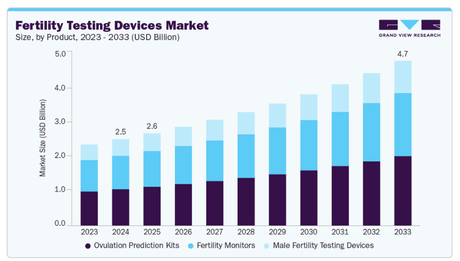 さらに、体外受精(IVF)をはじめとする生殖補助医療(ART)の手順の普及が、不妊治療機器を用いた妊娠前モニタリングを促進し、市場成長を加速させております。キャリア優先、高等教育、個人的目標などにより、多くの女性が家族計画を遅らせる選択をしております。親になる時期を遅らせると妊娠能力に影響を及ぼす可能性があり、生殖健康状態のモニタリングへの関心が高まっております。