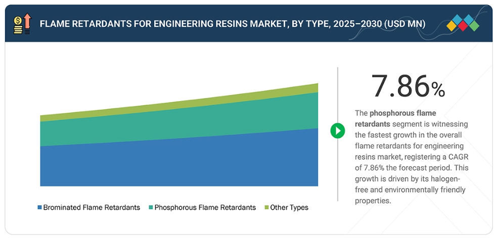 電気・電子セグメントは、エンジニアリング樹脂用難燃剤の最大の最終用途産業です。様々な分野における電子機器の需要増加は、安全性と規制順守を確保するための難燃性材料の需要を牽引しています。技術の進歩と日常製品における電子部品の普及は、耐火性が強化されたエンジニアリング樹脂の需要をさらに押し上げました。加えて、電気・電子産業における厳格な安全基準と規制により、エンジニアリング樹脂配合への難燃性添加剤の配合が義務付けられ、市場セグメントにおけるその主導的地位を確固たるものにしています。
