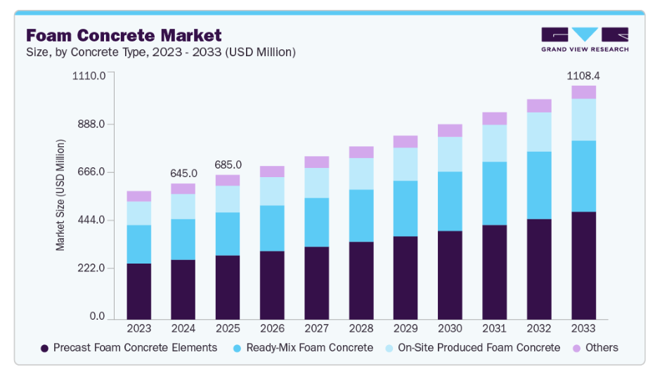 都市化の進展とインフラ開発プロジェクトの増加により、住宅建設と商業建設の両分野での使用が促進されています。特に、床・屋根断熱材、空隙充填材、道路路盤、プレキャストブロックなどの用途で発泡コンクリートの採用が進んでいます。さらに、原材料の使用量が少なく優れた断熱性を備えることから、持続可能な建設資材を求める世界的な動きが、その普及を後押ししています。