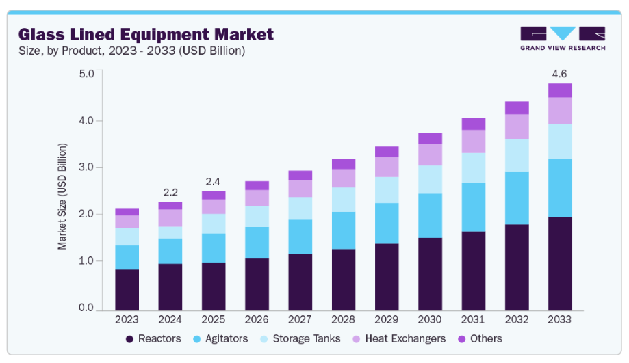 ガラスライニングの不活性特性は製品の純度を保証し、厳格な品質基準を要する産業において極めて重要です。さらに、環境持続可能性への関心の高まりが、リサイクル可能でエコフレンドリーな代替品であるガラスライニング設備の需要を後押ししています。加えて、製品安全と衛生に関する厳格な規制基準も市場成長に寄与しており、ガラスライニング設備はこれらの要件を効果的に満たします。インフラ開発への投資増加と世界的な製造施設の拡張も、市場の上昇傾向に重要な役割を果たしています。