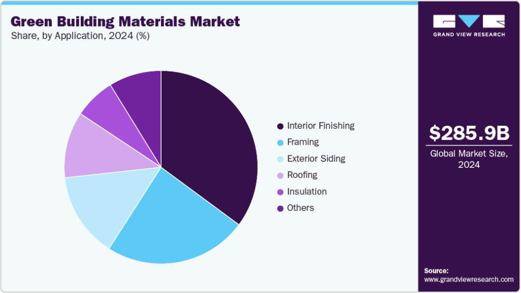 用途別では、内装仕上げセグメントが2024年に35.4%の最大収益シェアで市場をリードしました。