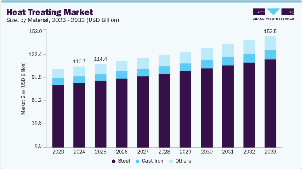 鋳鉄は、エンジンブロック、機械ベース、配管などの重負荷用途での使用増加により、予測期間中に熱処理市場で著しい成長率を示すと予想される。熱処理技術の進歩により、鋳鉄の強度と脆性に対する制御が向上した。そのコスト効率と高温条件への耐性は、業界用途において魅力的な要素となっている。鋳造所やエネルギー分野からの需要拡大が、その採用を加速させている。