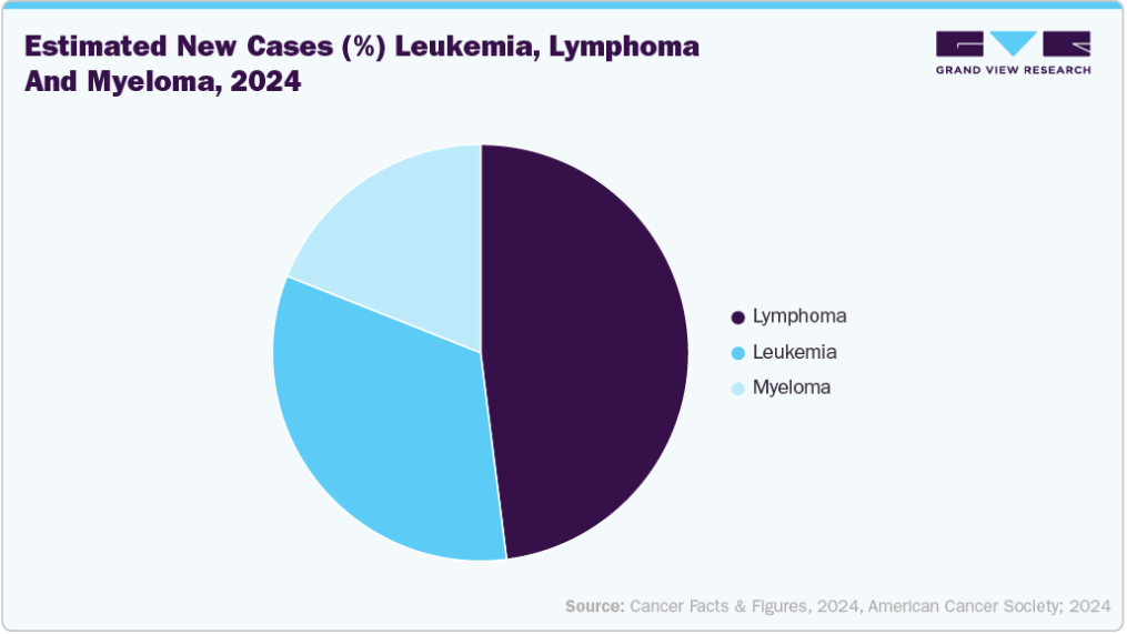 米国白血病・リンパ腫協会(LLS)によれば、2024年に米国で新たに診断されたリンパ腫症例は約89,190件で、うちホジキンリンパ腫(HL)が8,570件、非ホジキンリンパ腫(NHL)が80,620件であった。進行性リンパ腫診断技術に対するFDA承認の増加もセグメントの成長過程を牽引している。