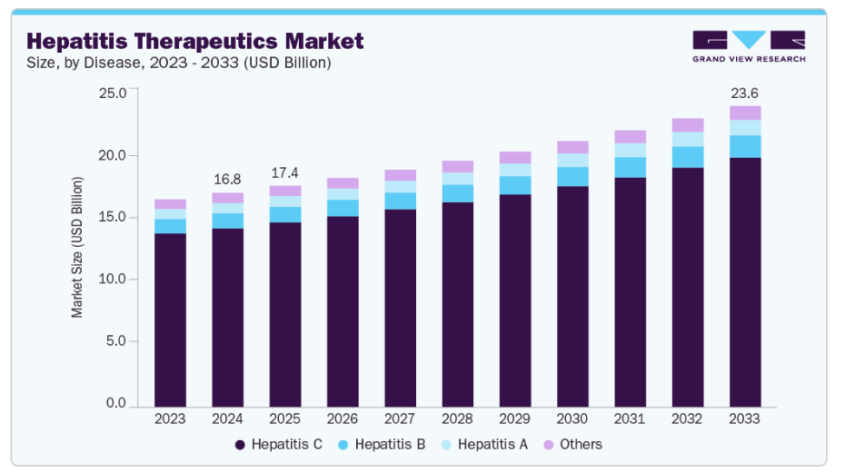 細胞ベースの免疫療法の出現は、特に慢性感染による進行性肝合併症患者を対象とした肝炎治療薬市場の成長を牽引しています。例えば、2025年5月にOncLiveが報じたところでは、自家HBV特異的T細胞療法であるSCG101が、進行性HBV関連肝細胞癌において抗ウイルス作用と抗腫瘍活性を示しました。第I相試験では、患者の94%が28日以内に顕著なHBsAg減少を達成し、最大1年間持続的な制御が確認されました。また23.5%の患者ではHBsAgの完全消失が認められました。腫瘍反応は患者の47%で観察され、全生存期間中央値は未到達でした。安全性面では一過性のALT上昇やサイトカイン放出症候群が最も頻度の高い事象であり、管理可能な範囲に留まりました。これらの成果は、未解決のニーズへの対応と市場拡大の強化において、革新的免疫療法の役割を強調するものです。