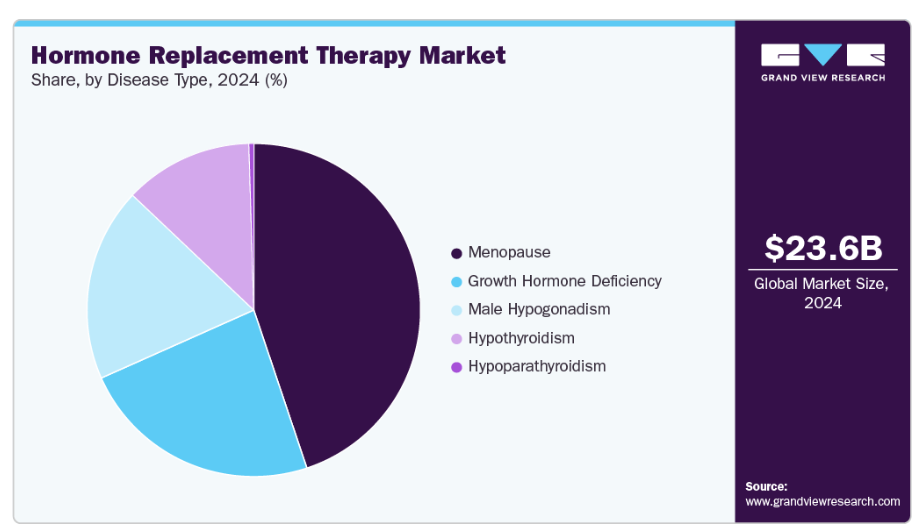 - 疾患タイプ別では、更年期障害セグメントが2024年に最大の市場収益シェアを占めました。
