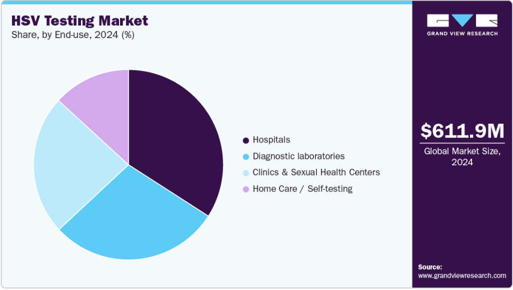 在宅介護および自己検査セグメントは、プライバシー、利便性、HSV感染の早期発見に対する需要の高まりを背景に、予測期間において最も高いCAGRで成長すると予想される。性健康への意識向上と使いやすい家庭用検査キットの普及により、個人が診療所を訪れることなく自己スクリーニングが可能となっている。この傾向は、遠隔での結果共有や遠隔診療を可能にするデジタルプラットフォームの利用拡大によってさらに後押しされている。新型コロナパンデミックは自己モニタリングへの移行を加速させ、分散型診断オプションの必要性を強化しました。新型検査キットは、指先採血や口腔スワブを用いた簡素化された検体採取を特徴とし、スマートフォンベースの指示やクラウド対応報告ツールで機能強化されています。患者が自身の性健康管理をより強く求める一方、医療が予防医療を優先する中、在宅検査セグメントはHSV診断市場における重要な成長過程として台頭しています。