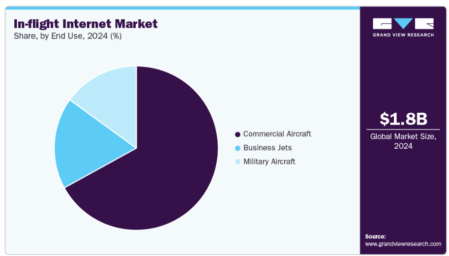 衛星ベースのセグメントは、航空機と地上のネットワークが機能しない長距離路線や越洋路線において、一貫した高速接続を提供できることから、2024年に市場を支配しました。航空会社は、グローバルなカバレッジを確保し、機内インターネットサービスの品質を向上させるため、衛星サービスプロバイダーとの提携を強化しています。高スループット衛星(HTS)や低軌道衛星コンステレーションの導入拡大は、衛星ベースシステムの性能と信頼性をさらに向上させています。この傾向は、途切れない接続性に対する乗客の期待の高まりによって支えられており、航空会社は拡張性と将来性を備えた衛星インフラへの投資を促されています。