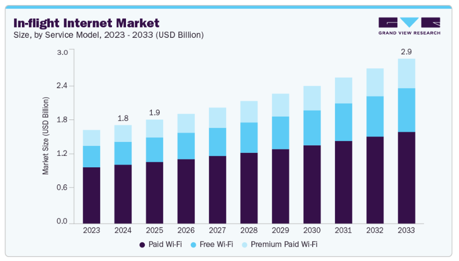 欧州の機内インターネット業界は、航空会社と通信事業者間の連携強化により、拡張性のある汎欧州機内ブロードバンドインフラが整備されることを背景に、2025年から2033年にかけて年平均成長率(CAGR)4.0%超で成長すると予測されています。同地域のLCCは競争力を維持するため、限定的なサービス提供から広告収入による無料インターネットへの移行を開始しています。さらに欧州委員会の「Digital Sky」イニシアチブは、接続された航空機を戦略的要素として含む空域の近代化を支援しています。