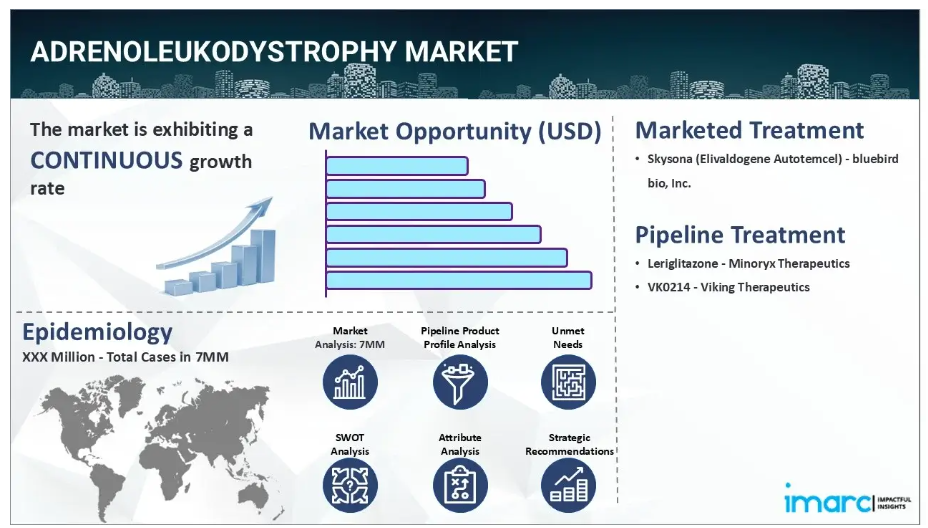 IMARC Groupの新報告書は、米国、EU4(ドイツ、スペイン、イタリア、フランス)、英国、日本における副腎白質ジストロフィー市場について包括的な分析を提供しております。これには、治療実践、市場流通中および開発中の薬剤、個別療法のシェア、主要7市場における市場動向、主要企業とその薬剤の市場実績などが含まれます。また、主要7市場における現在および将来の患者数についても記載されております。