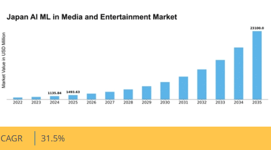 日本のAI・機械学習を活用したメディア・エンターテインメント市場は、技術進歩と消費者の嗜好変化を背景に大幅な成長が見込まれる。