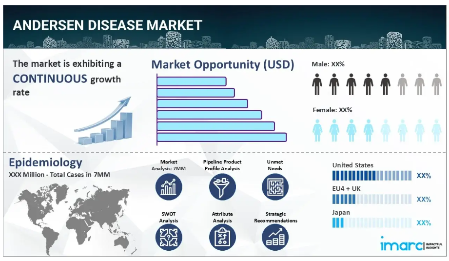 IMARC Groupの新報告書は、米国、EU4(ドイツ、スペイン、イタリア、フランス)、英国、日本におけるアンデルセン病市場について包括的な分析を提供しております。これには、治療実践、市場流通中および開発中の医薬品、個別療法のシェア、7大市場における市場動向、主要企業とその医薬品の市場実績などが含まれます。本レポートではさらに、7大市場における現在および将来の患者層についても提示しております。