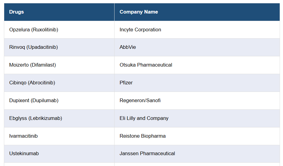 本レポートでは、現在市場流通中のアトピー性皮膚炎治療薬および後期開発段階のパイプライン薬剤についても詳細な分析を提供しております。