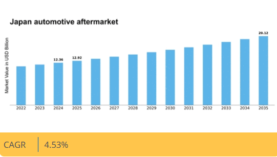 日本の自動車アフターマーケット市場は、技術進歩と自動車所有台数の増加を背景に、2024年から2035年にかけて年平均成長率(CAGR)4.53%で成長すると予測されています。
