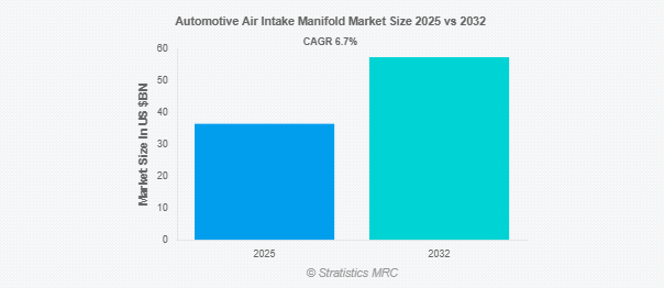 Stratistics MRCによると、自動車用エアインテークマニホールドの世界市場は2025年に364億3,000万ドルを占め、予測期間中の年平均成長率は6.7%で、2032年には573億6,000万ドルに達する見込みです。自動車用エアインテークマニホールドは、吸気システムからエンジンのシリンダーに空気を導く内燃エンジンの重要なコンポーネントです。最適なエアフロー分布を確保し、エンジン性能、燃費、排出ガス制御を向上させます。通常、プラスチック、アルミニウム、または複合材などの材料から作られ、安定したバランスの取れた空気供給を確保することで、出力を向上させ、スムーズなエンジン動作を維持する上で重要な役割を果たします。