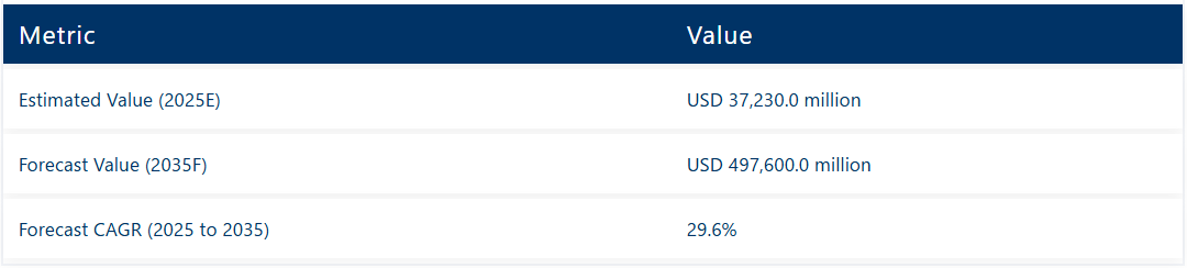 2030年から2035年にかけて、市場規模は124,180百万米ドルから497,600百万米ドルへ成長し、373,420百万米ドルの増加が見込まれる。これは10年間の総拡大規模の81.1%を占める。